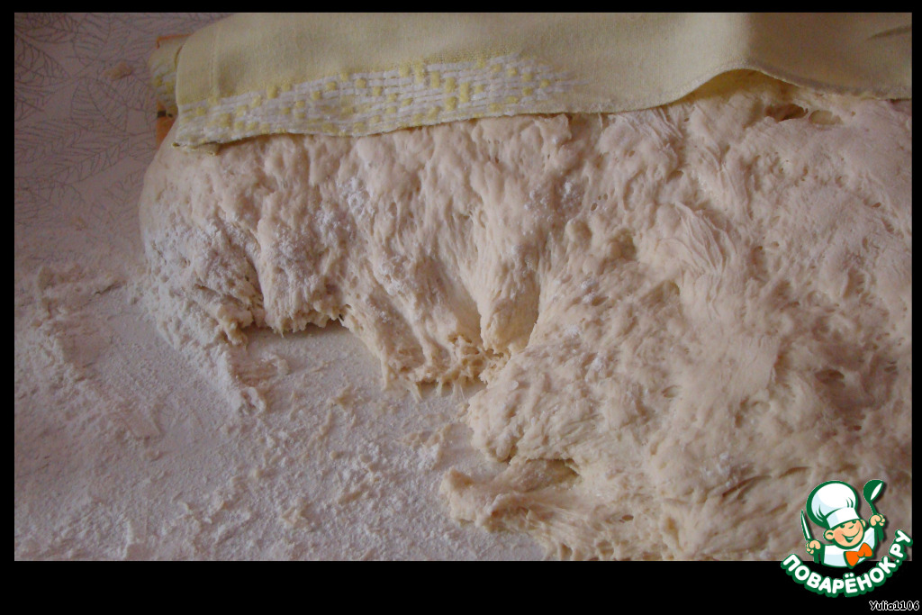 ... и вымесить крутое тесто. Готовое тесто накрыть и поставить в теплое место на 45-60 мин., чтоб подошло.