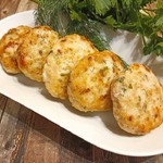 Взбить яйца, добавить зелень, перец, крахмал, майонез и приправу. Все перемешать вместе с мясом.
