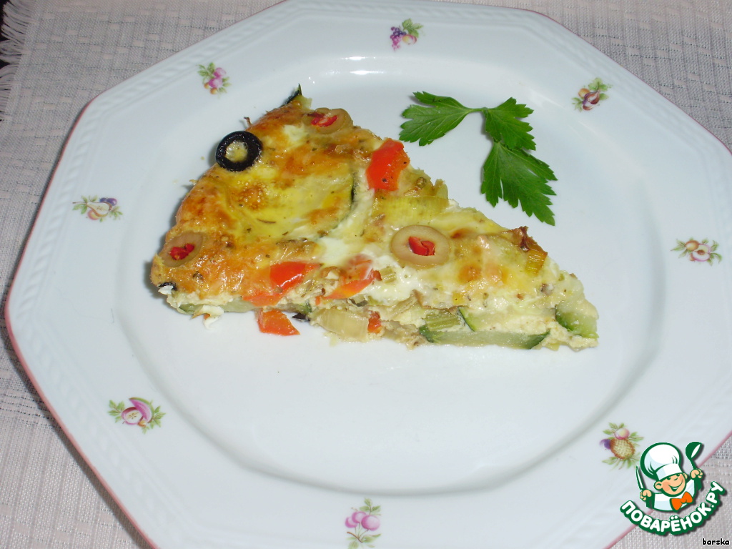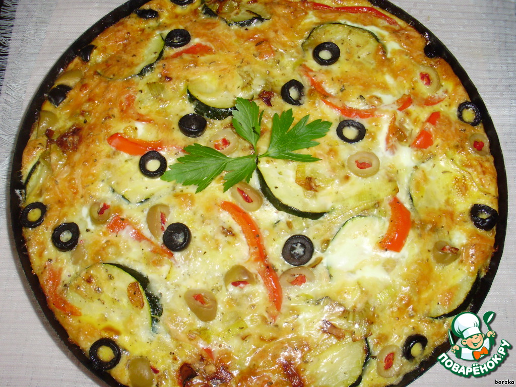 Ещe один замечательный рецепт средиземноморской кухни. Эта тортилья очень похожа на овощной пирог. Лeгкое блюдо для жаркого лета. Вкусный рецепт для любителей овощей, маслин и сыра.