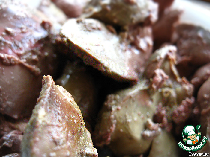 Охлажденную печенку отправляем в мясорубку и измельчаем вместе с луком.