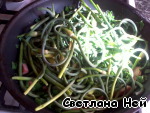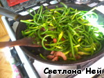 Обжарить все содержимое сковороды, закрыть крышкой и потушить минут 10 (чтобы стрелки размягчились)