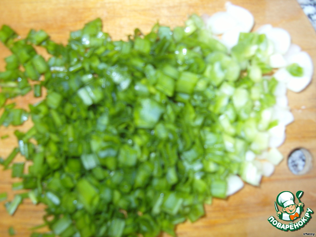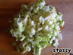 Теперь капуста, её тоже мелко режем, я резала квадратиками