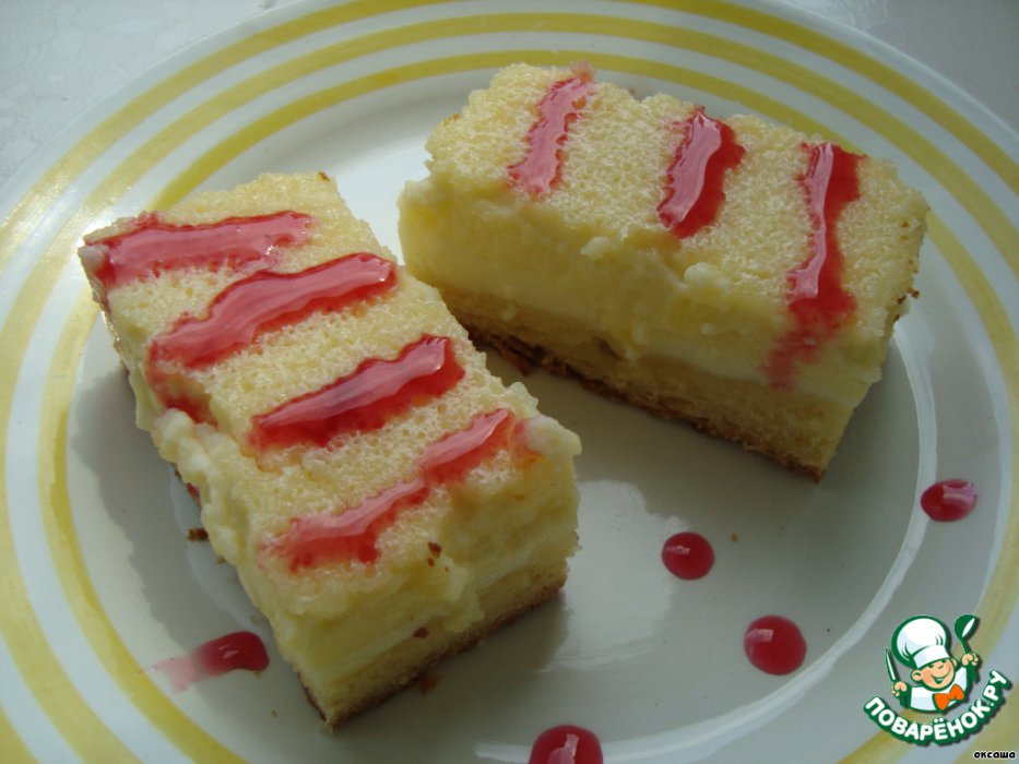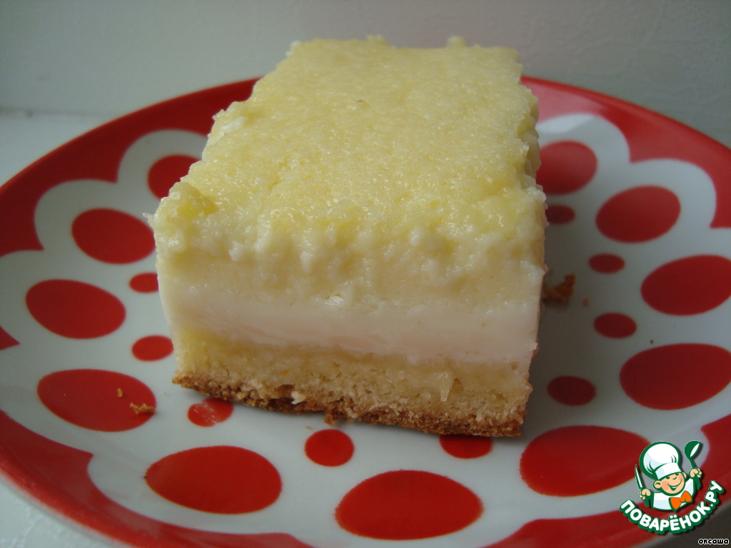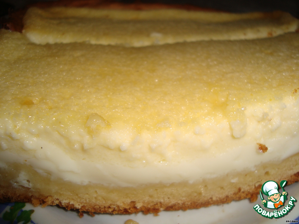 Очень вкусный пирог. В процессе выпекания сок из сметанного крема пропитывает песочный корж... ммм, советую приготовить. Можно подавать как пирожное. Рецепт взят с сайта "Клуб кулинаров"