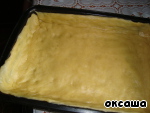 Выложить тесто в смазанную маслом форму (бортики формы не смазывать). У меня форма 18 на 28.Тесто осталось. Из него я испекла коржики.