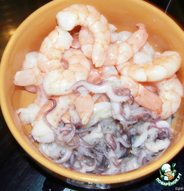 - Кальмар (замороженные, у меня хвостики кальмаров ) — 50 г