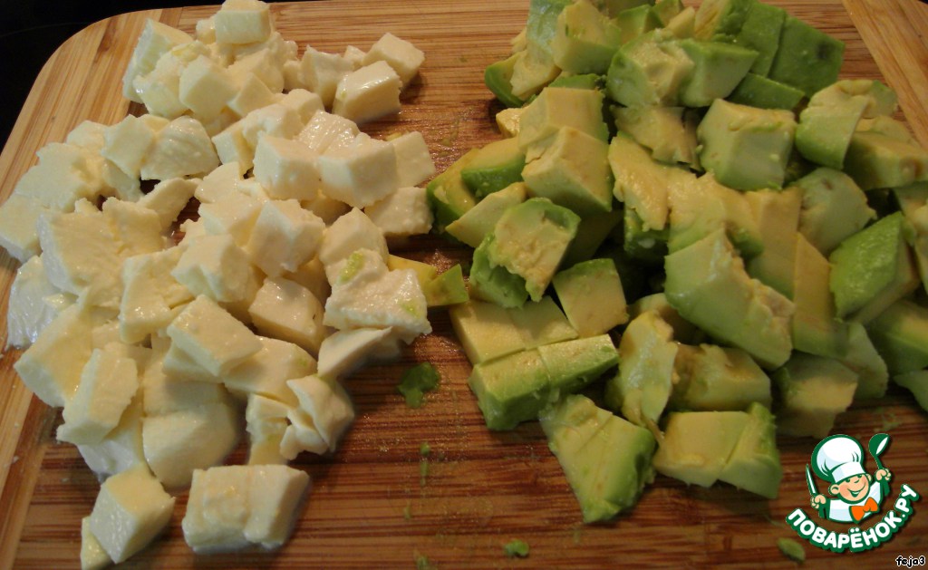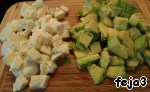 4. Теперь порежем кубиками сыр и авокадо.
