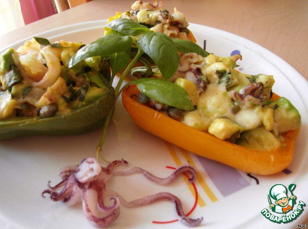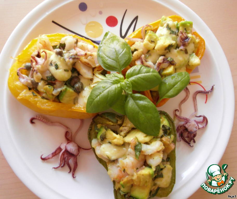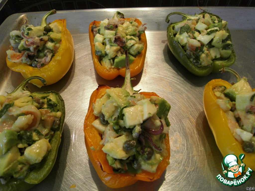 Рецепт «Печеная паприка, фаршированная авокадо с морепродуктами»: