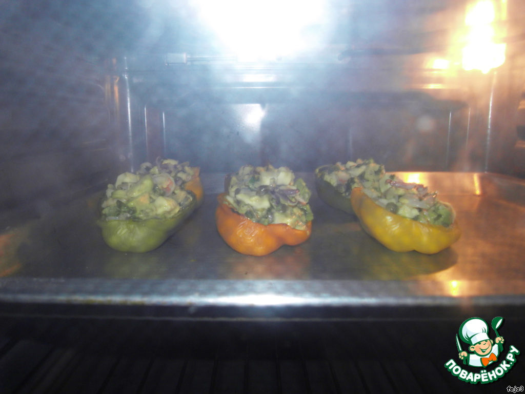 7. Достаем из духовки наш перчик и начиняем его приготовленной начинкой.