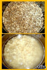 3 - Через мясорубку, если пропустить, сварить кашу не кисель. Мелкие быстрее настоятся, не обязательно на ночь оставлять. А, если хлопья на кисель замачивать и протирать, потом их уже не куда, выбросить.