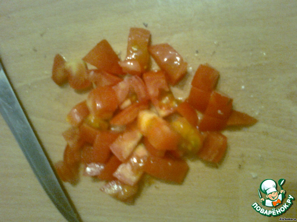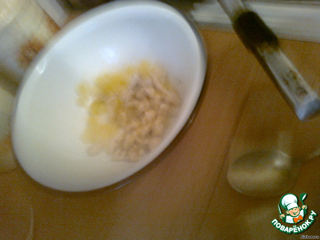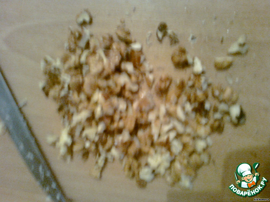 • измельчаем грецкие орехи. я брала на глаз, готовых порезаных получилось около 2-х столовых ложек)