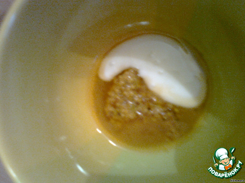 • в сок, оставшийся от жарки курицы, добавляем чайную ложку горчицы с зернами и где-то столовую ложку несладкого йогурта. поскольку сок соленый, я соль не добавляла, но это все дело вкуса)))