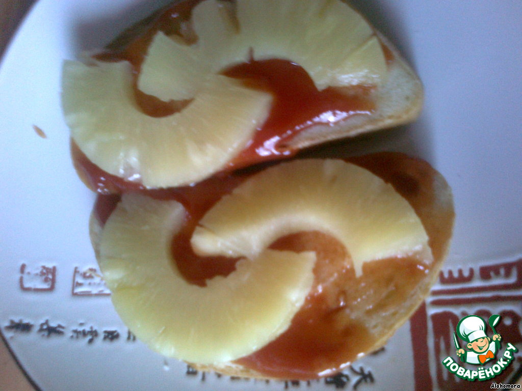 Вкусный, недорогой рецепт интересных горячих бутербродиков на завтрак и не только) Острый кетчуп и сладкие нотки ананаса создают приятный пикантный вкус) Рецепт, конечно, "баян", но не бросайте в меня тапки, я только учусь)))))