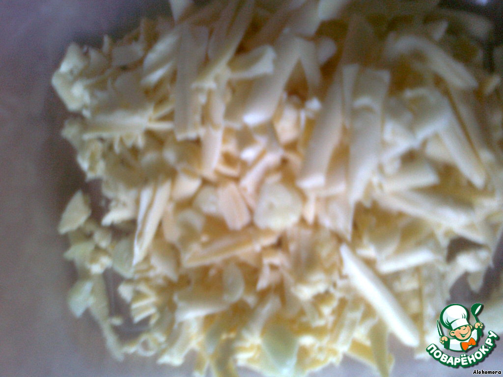 натираем на крупной терке плавленный сырок, добавляем немножко соли и сырое куриное яйцо. перемешиваем)