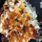Этим фаршем залить равномерно овощи, верх я украсила решёткой из майонеза.