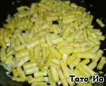 Нагреваем 1 ст.л. масла и обжариваем фасоль, добавляем лук.