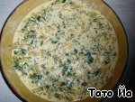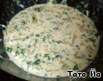 Смешиваем остальные яйца, сливки, сыр, солим, перчим. -