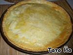 Смазываем форму для выпечки. Раскатываем тесто. Выкладываем в форму, обрезаем края. Накалываем вилочкой.