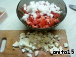 3. Лук (у меня салатный белый - для красоты) нарезаем тоже кубиком. Главное - не мельчим!
