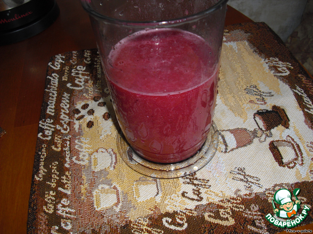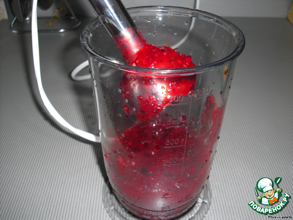 Итак, снова рецепт))) Ягоды, уже подтаявшие, измельчаем блендером, добавляем немного сыворотки и процеживаем (если не любите мякоть) или оставляем так. |
