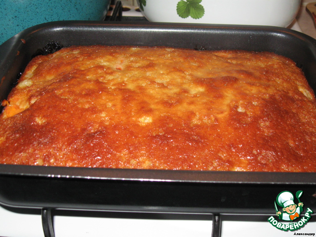 Всего взяла в 2 раза больше, только муку 2 раза по 2 стакана, как здесь многие писали. На противень действительно нужно больше половины теста выложить, иначе абрикосы опускаются ближе ко дну. Но это для следующего раза