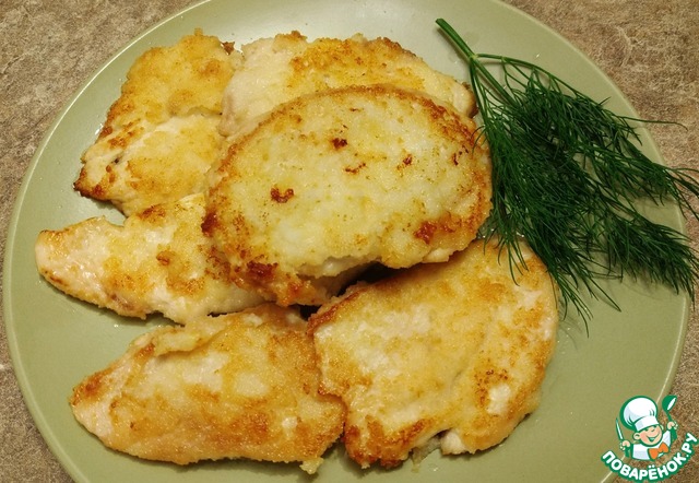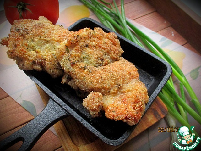 Подготовить панировку. У меня это была манная крупа со специями для курицы.
