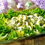 нарвем салатные листья и заправим сметаной (желательно жирную), посолим , поперчим - перемешать и готово