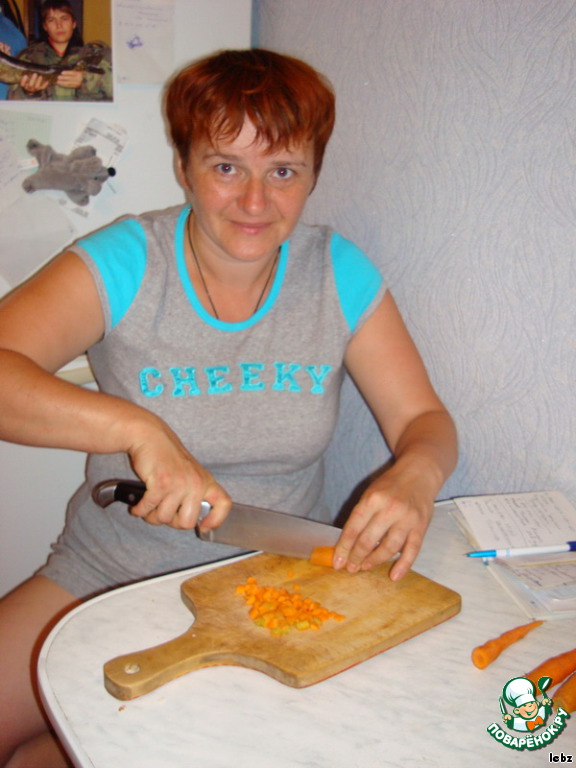 Режем морковь (кума не дождалась тёрки и режет вручную) и лук,