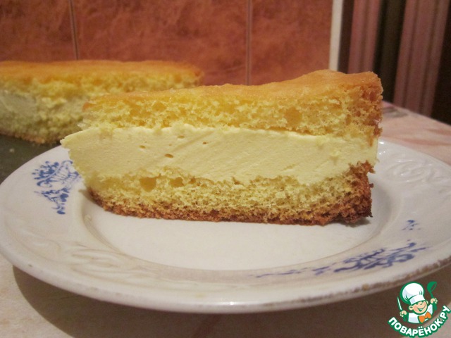 Как испечь бисквит, я снимать не стала. Бисквит тут самый что ни на есть обыкновенный: яйца взбить с сахаром в течение 10 минут, всыпать муку, размешать. Выпекать на среднем огне 30 минут. Готовность проверить спичкой. Готовый бисквит остудить и разрезать на два пласта. Все элементарно.