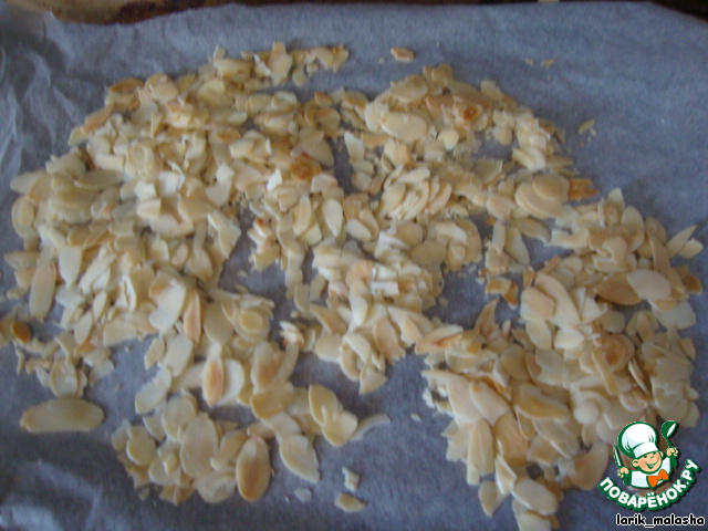 Также подсушить миндаль - выложить его на противень и в духовку до зарумянивания.