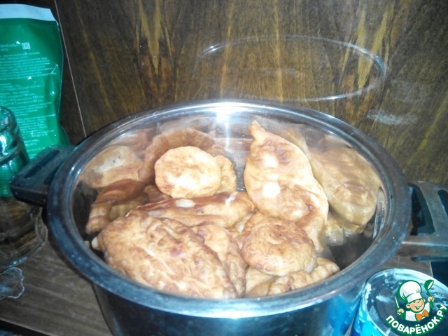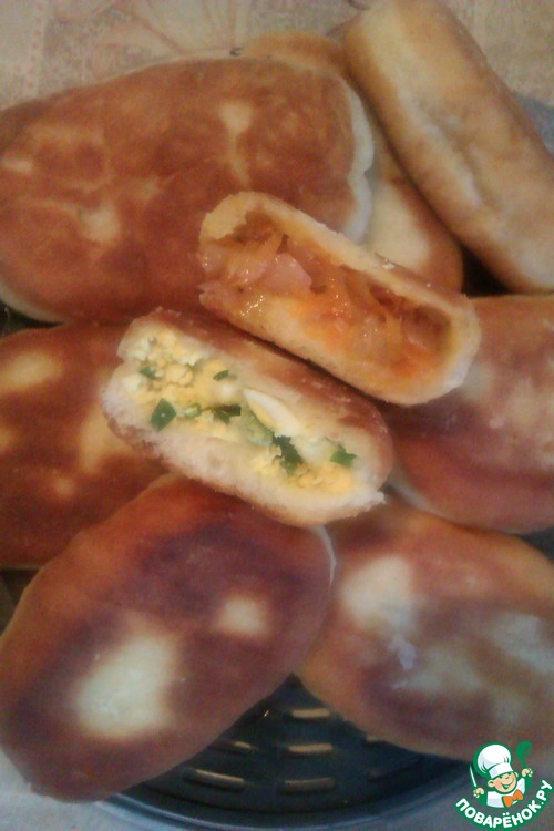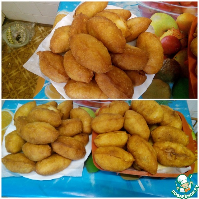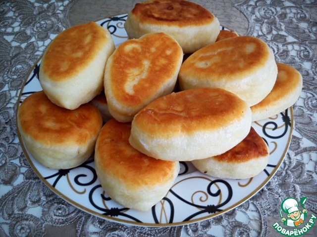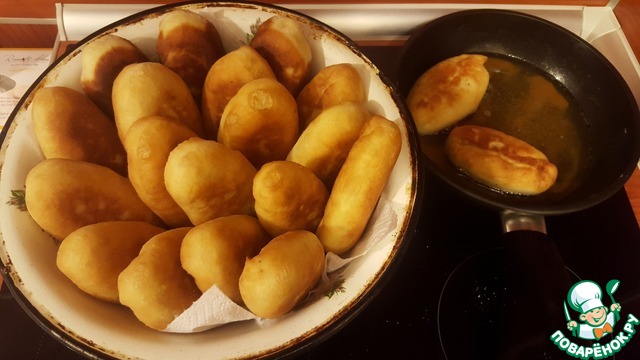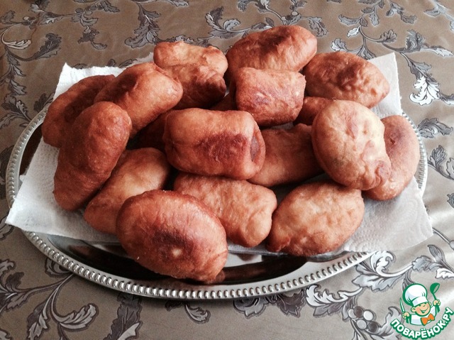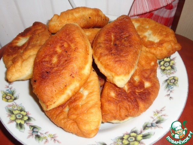 Сформировать пирожки с любимой вами начинкой и жарить в большом количестве масла.