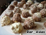 Поливаем шарики шоколадом и обваливаем в кокосовой стружке