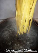 Ставим воду для отваривания лапши. Как только она закипит, кидаем пасту.
