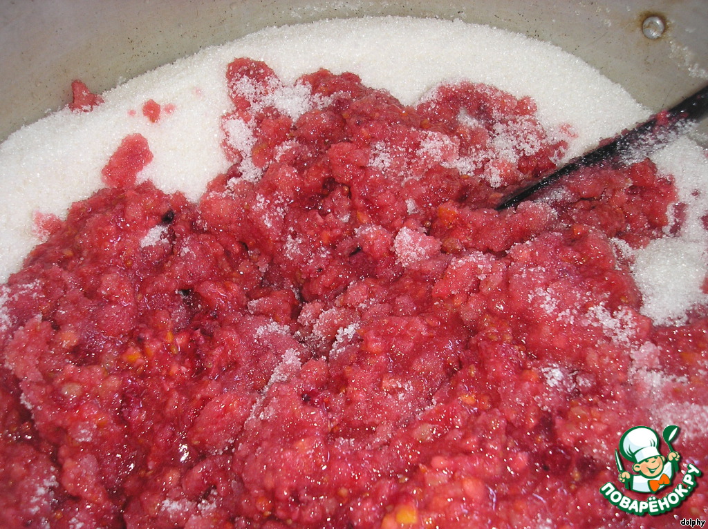 Смешайте фрукты, взвесьте их и добавьте такое же количество сахара. У меня получилось 3,2 кг.