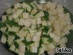 Чистим картофель, кабачок лучше оставить с кожурой (если она достаточно нежная), режем кубиком 1х1 см