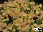 Как только чеснок станет отдавать свой характерный запах, выкладываем в сковороду кабачок и картофель.