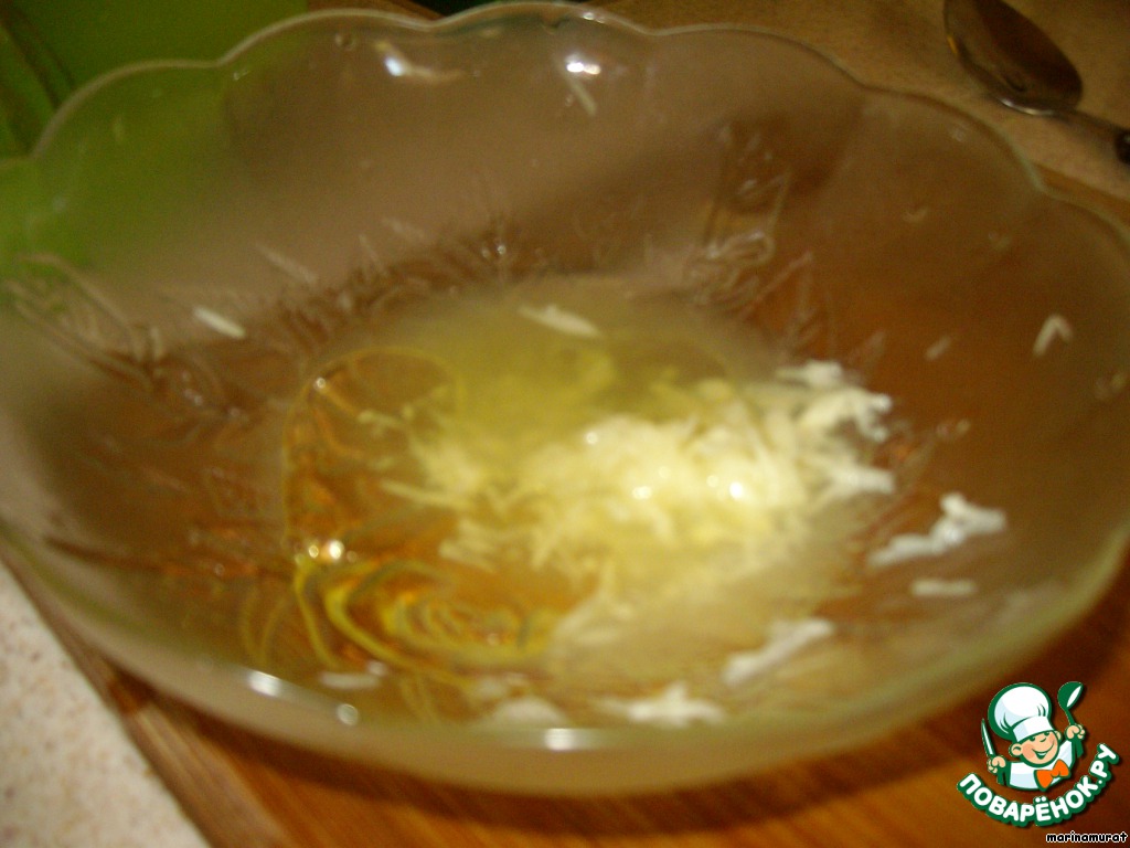 • В это время готовим соус: мелко режем чеснок или трем на терке (как нравится). Выжимаем сок лимона, добавляем к чесноку, туда же отправляем оливковое масло (желательно pure oliv oil).