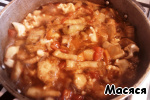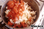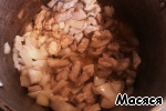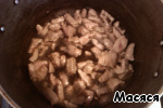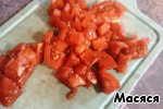 Баклажаны режем крупно, слегка присаливаем и оставляем до появления сока. Сок сливаем.