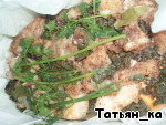 [+5]Чай зелёный, среднего помола, мне даже не мешали те чаинки, которые прилипли к рыбе. Чудесный рецепт!