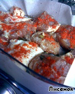 Выложить замаринованные кусочки рыбы и посыпать их паприкой.