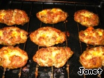 Уложить на решётку наши зразы. Шов должен быть сверху, иначе может сыр потечь.