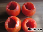 У помидоров удаляем сердцевину, но не выбрасываем её, а разминаем вилкой в отдельной тарелке.
