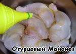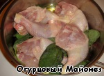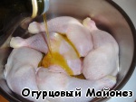 Добавляем их к курице и перемешиваем, чтобы окорочка были со всех сторон обмазаны маринадом. Закрываем крышкой и оставляем мариноваться на полчаса.
