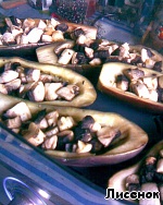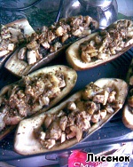 В корзину пароварки положить "лодочки" из баклажанов, заполнить грибами.