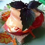 Накрыть пластинками сыра, поставить на 5-7 минут в горячую духовку, буквально, чтобы прогрелось и расплавился сыр.