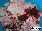 Мороженое положите в миску. Деревянной ложкой смешайте малину и меренги. Если используется замороженная малина, её нужно предварительно разморозить.