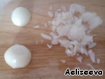 Мелко нарезать репчатый лук и смешать с рыбной кашицей. Это будет первый слой нашего салата.