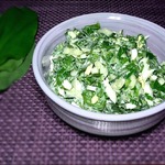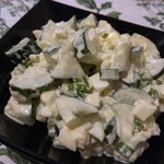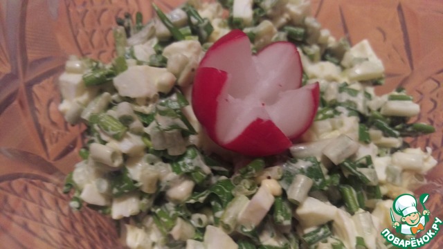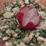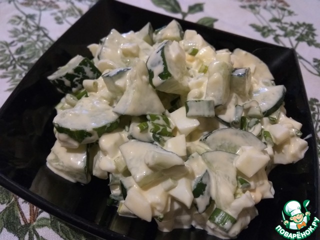 Мелко нарезать яйцо и огурец (этот салатик неплох и без огурца).