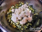 Все хорошо перемешиваем, накрываем крышкой или пищевой пленкой и убираем в холодильник на 20 мин.