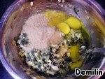 Для него берем 2 яйца + 1 белок, 1/3 стак. панировочных сухарей и 250г раскрошенной феты. -
