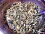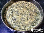 Добавить к луку шпинат и обжаривать, помешивая, еще минут 7-8. Затем уменьшить огонь, закрыть крышкой и тушить еще минут 5.